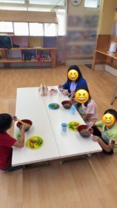 いろいろなメニューがある食育で、子供たちも初めて食べる物や今まで苦手だった物にも挑戦することができました🥦