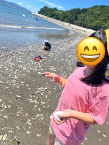 海辺で生き物探しや貝殻拾いに夢中🐚