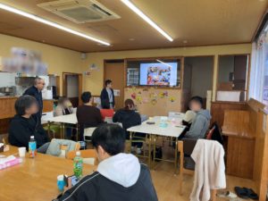 食後は保護者会を行い、支援プログラムの内容、そくしんのコンセプトやブログをモニターで見ながら説明させていただきました。