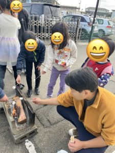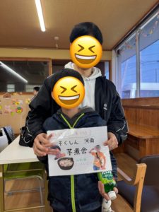 管理者より:今年は8日(土)に河南店で開催しました。牧山市民の森で計画していましたがクマ出没の危険を鑑みて急遽変更しました。そして、この機会に保護者会も行いました。ご参加いただいた皆さまありがとうございました。おにぎりやお菓子、芋煮の具材を差し入れてくださった保護者様にも感謝申し上げます。今後もイベントをたくさん計画しますのでご検討よろしくお願いします。