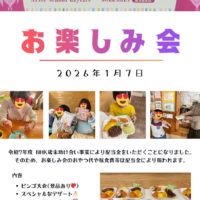 管理者より:年末に助成費を受け取り、毎年恒例のお楽しみ会を開催しました。ありがとうございました😄 豪華なお食事を用意し、みんなでいただきました。おや …
