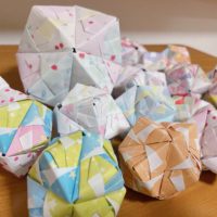 折り紙で、立体くす玉作りに挑戦です。 手順を見なくても、スムーズにパーツを折れるようになってきました。 次々とくす玉が出来上がっています。 このくす玉をたくさんためて、 さらに大作ができそうな予感です♫