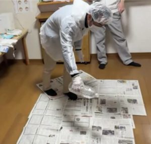 私たちが考えている以上に嘔吐物は飛び散るそうです。感染が広がらないよう手順を確認して、しっかりと処理する事が大切です。