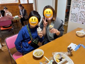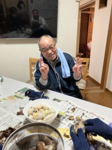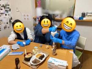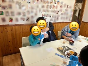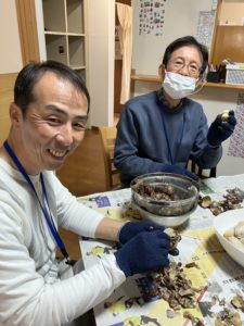 そくしん渡波の芋煮会は、今年は安全を考慮して事業所で開催しました。